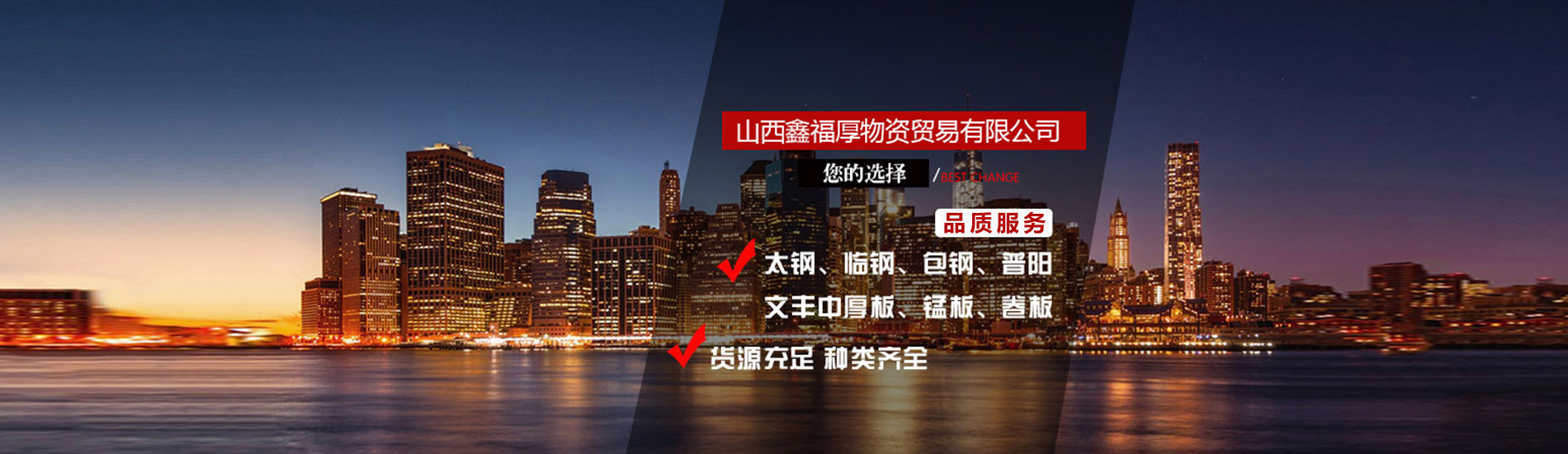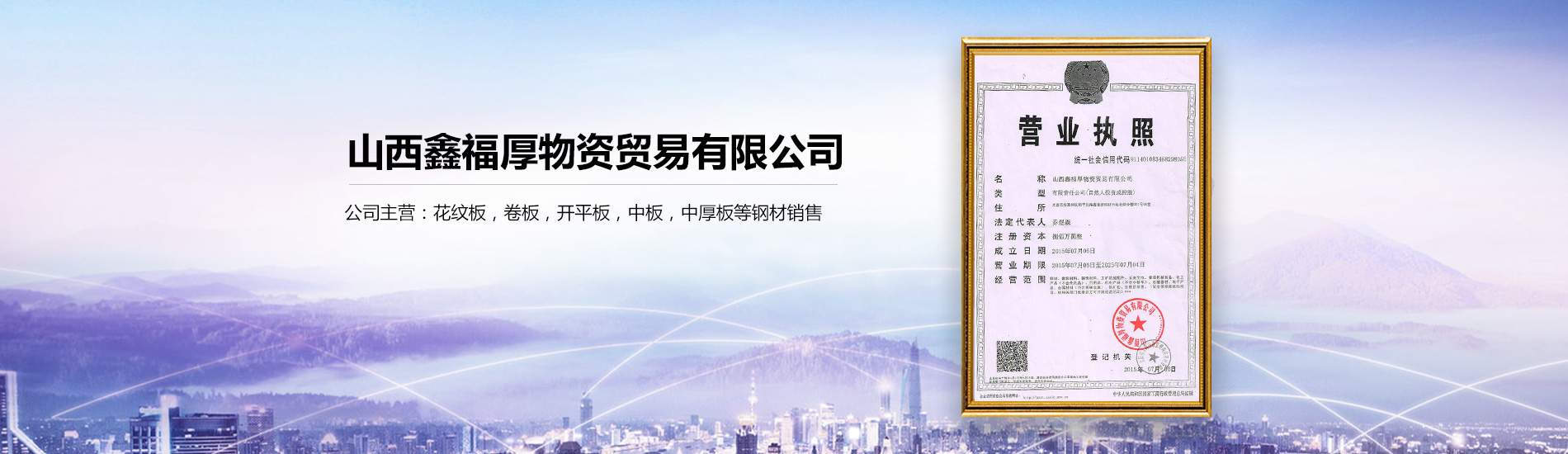 山西鑫福厚物資貿易有限公司成立于2000年8月,現位于太原市興華西街奇天瑞鋼材市場北市場A區27-30號,緊臨興華街(東社)高速口,地理位置好,渠道流暢,交通便利。我公司現主營太鋼、臨鋼、包鋼、文豐中厚板、卷板、錳板、開平板、小塊板、不銹鋼、品種鋼及各種螺紋、線材、型材等,貨源充足,種類齊全。